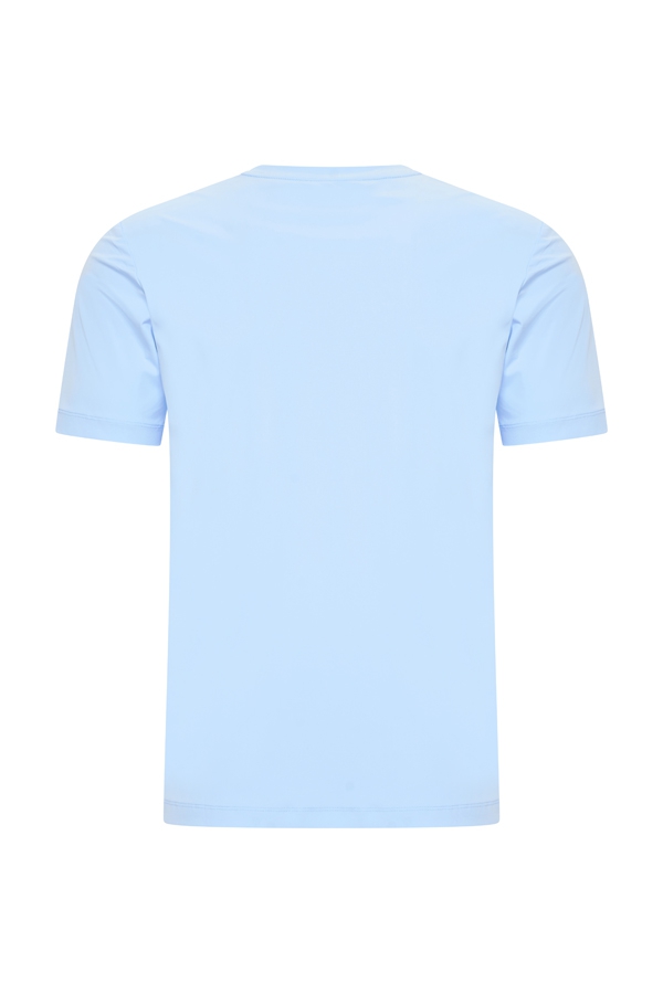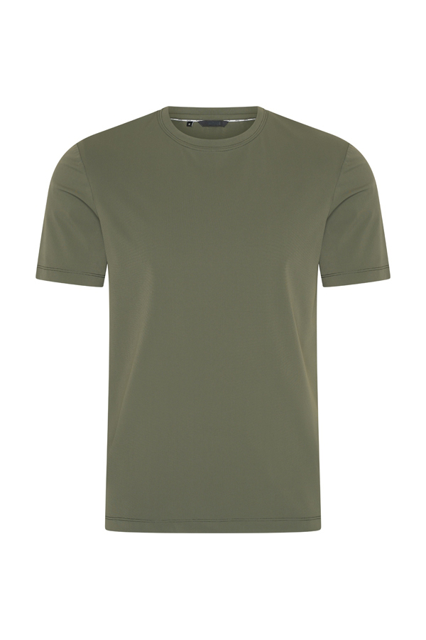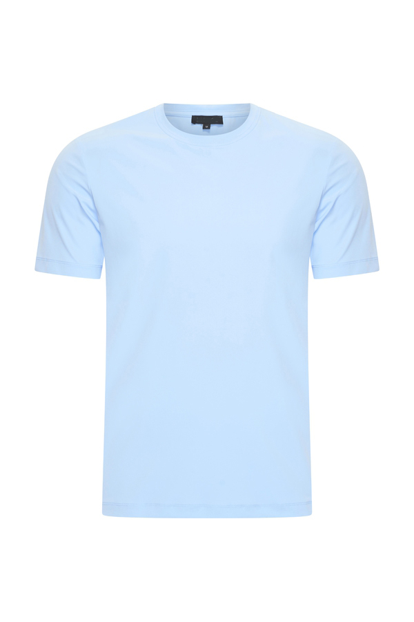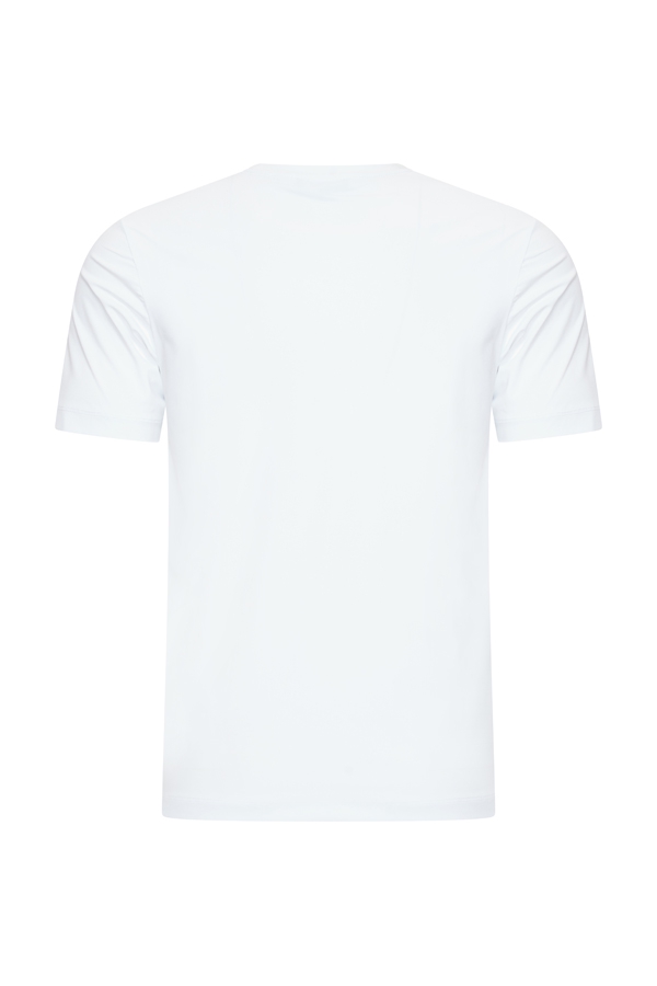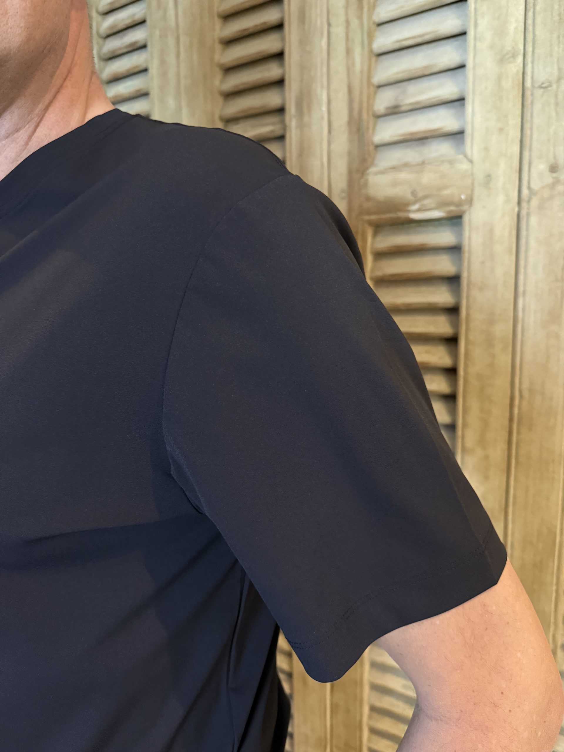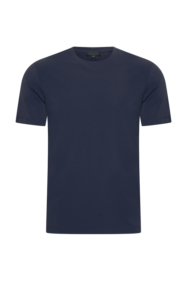 Het basis-stuk uit onze collectie is dit T-shirt. Mooie ronde hals, niet te strak, niet te wijd, goede lengte van de mouwen, perfecte snit en gemaakt van een soepele 180 gr. travel-stof. Dit T-shirt is onmisbaar om onder het overhemd en het jasje te dragen.
