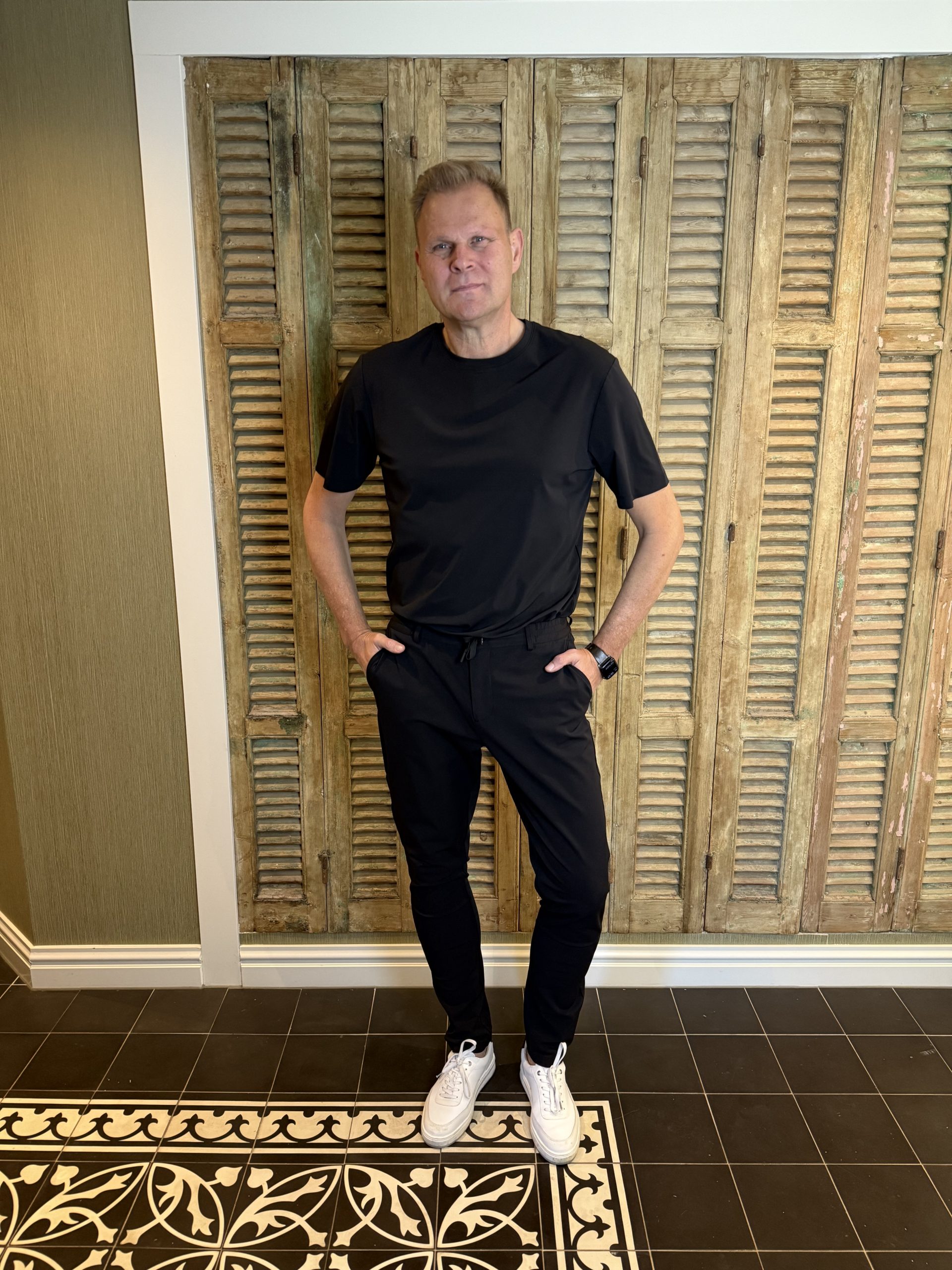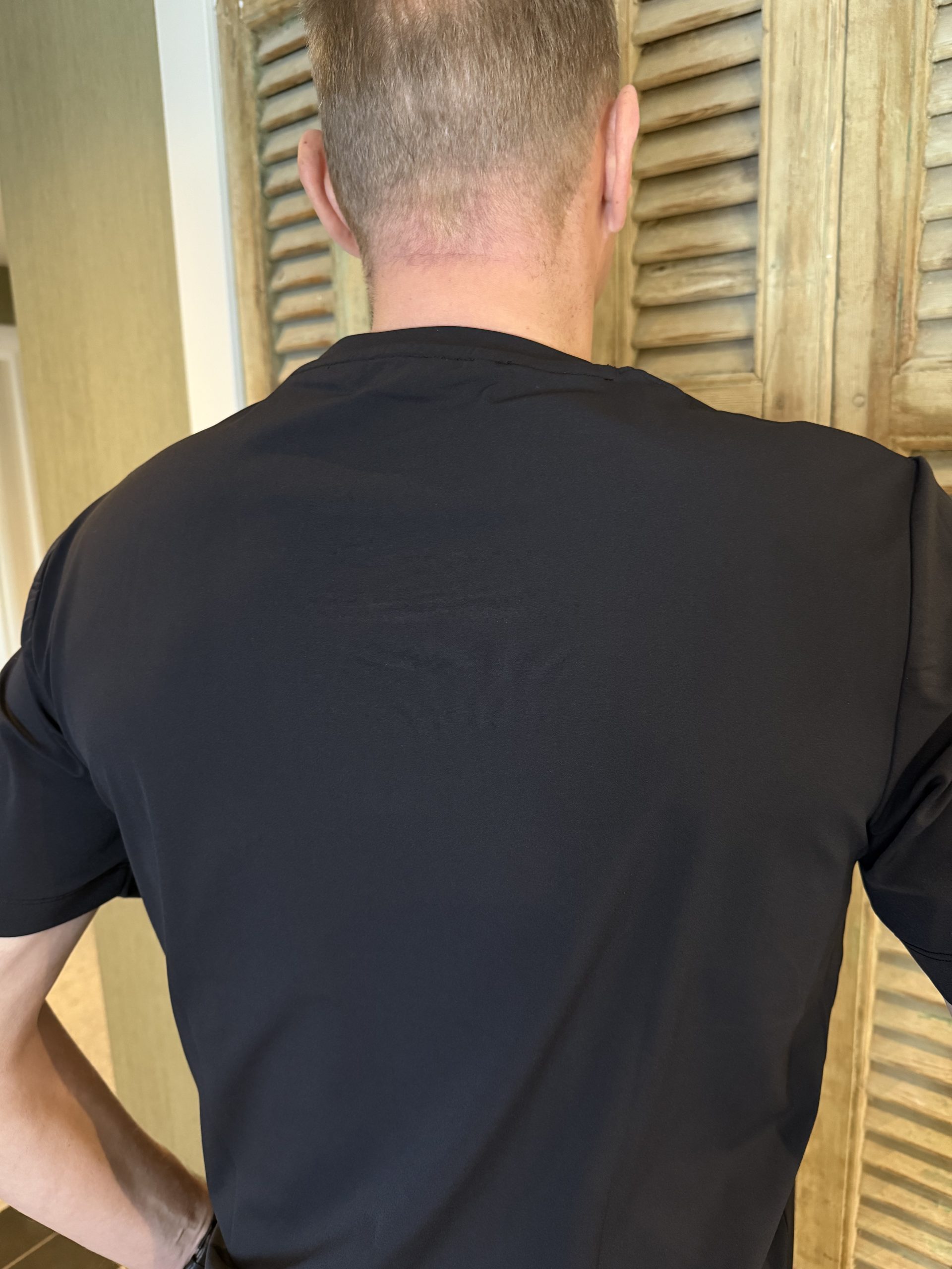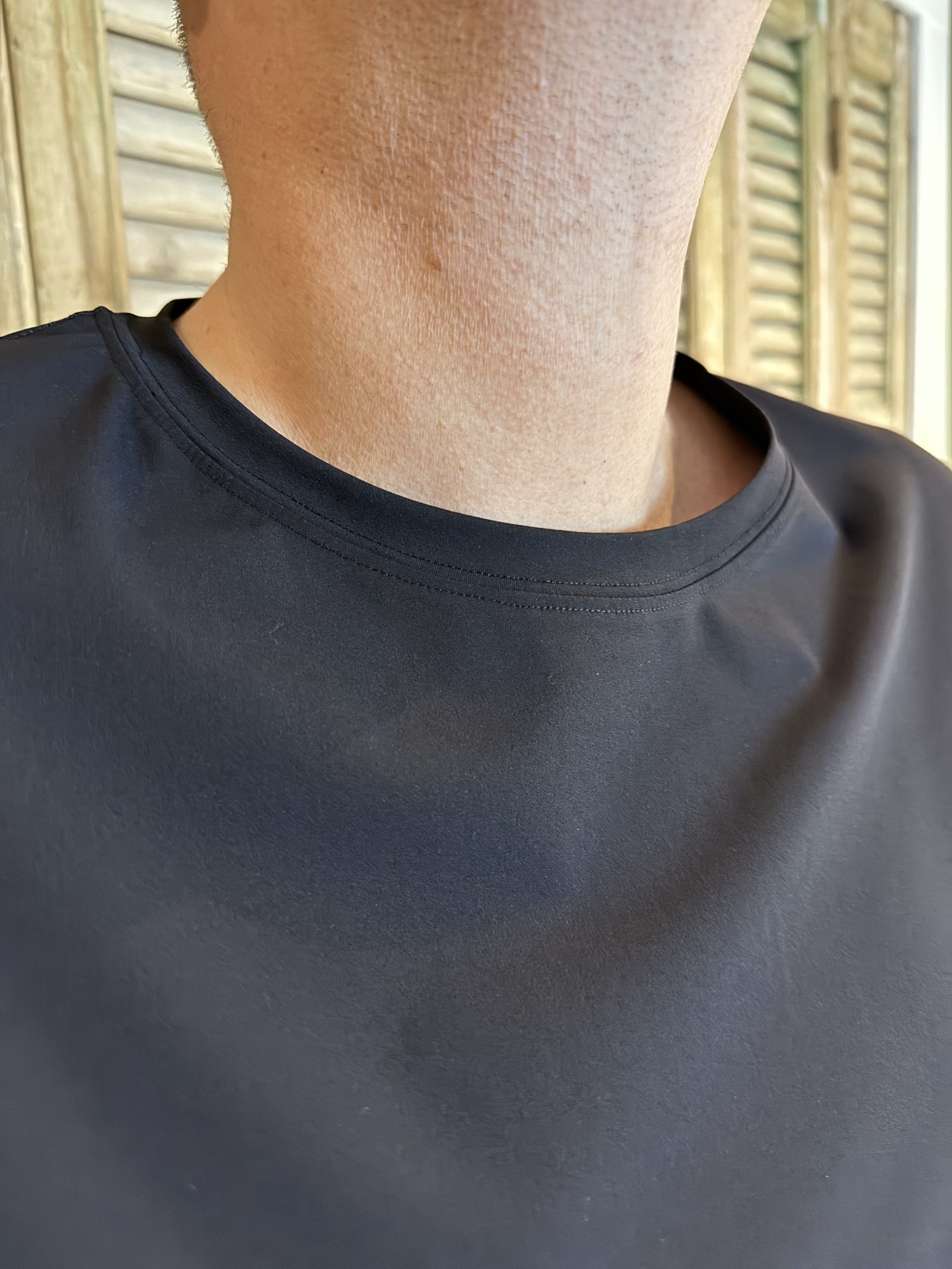Het basis-stuk uit onze collectie is dit T-shirt. Mooie ronde hals, niet te strak, niet te wijd, goede lengte van de mouwen, perfecte snit en gemaakt van een soepele 180 gr. travel-stof. Dit T-shirt is onmisbaar om onder het overhemd en het jasje te dragen.